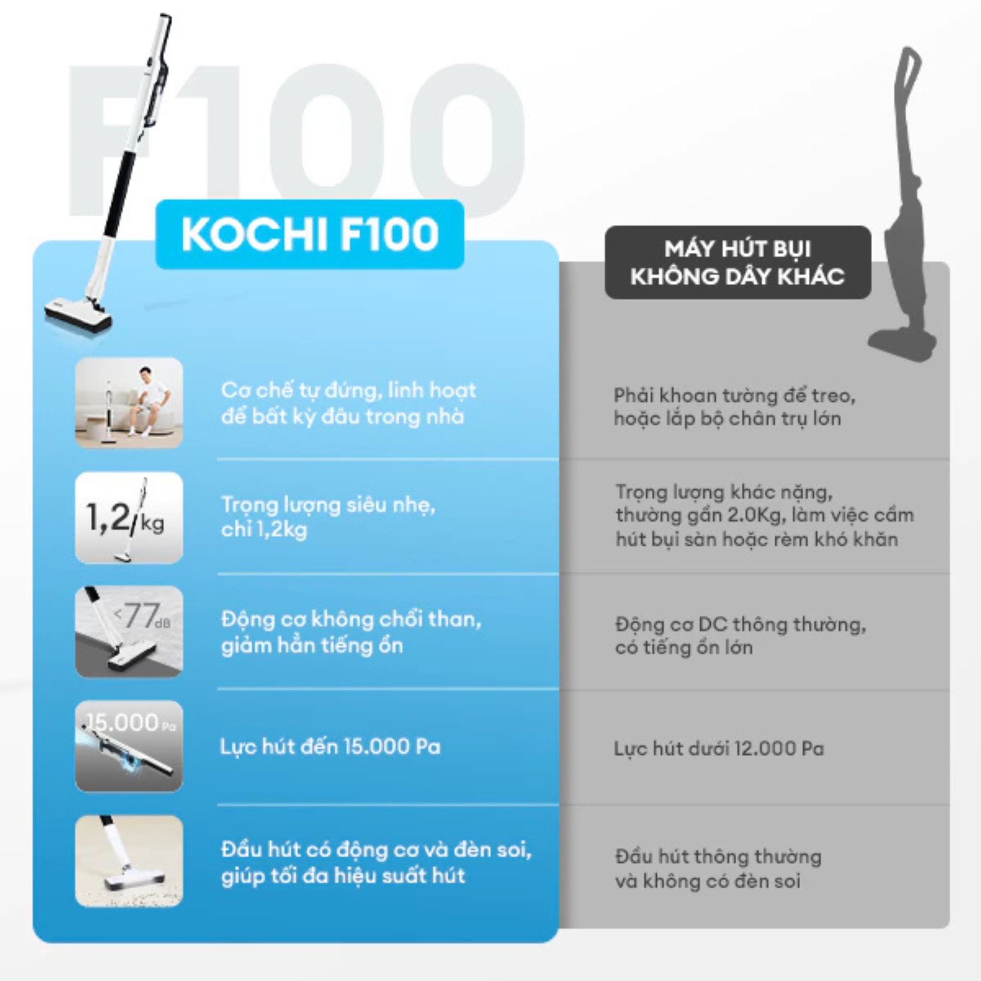 [Đã qua sử dụng] Máy hút bụi không dây siêu nhẹ KOCHI F100 - Gọn nhẹ tự đứng, chỉ 1.2Kg - Siêu mạnh 15,000pa