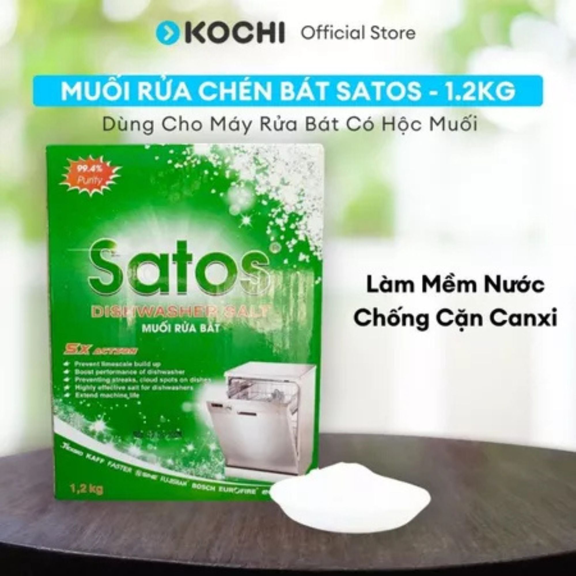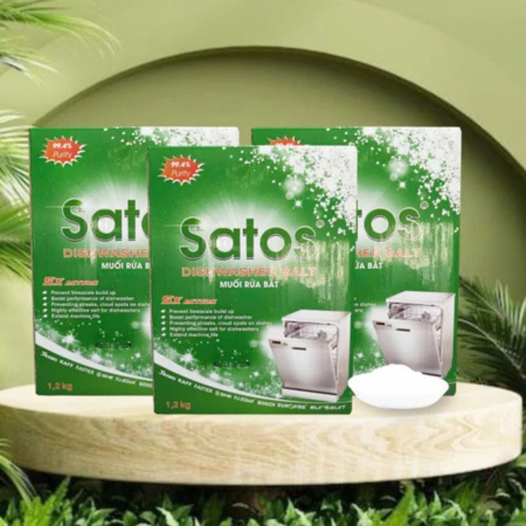 Muối Rửa Chén Bát Sinh Học Satos 1.2kg - Tinh Khiết 99.4%, Dùng Cho Máy Rửa Chén Có Hộc Muối - Làm mềm nước, loại cặn ca